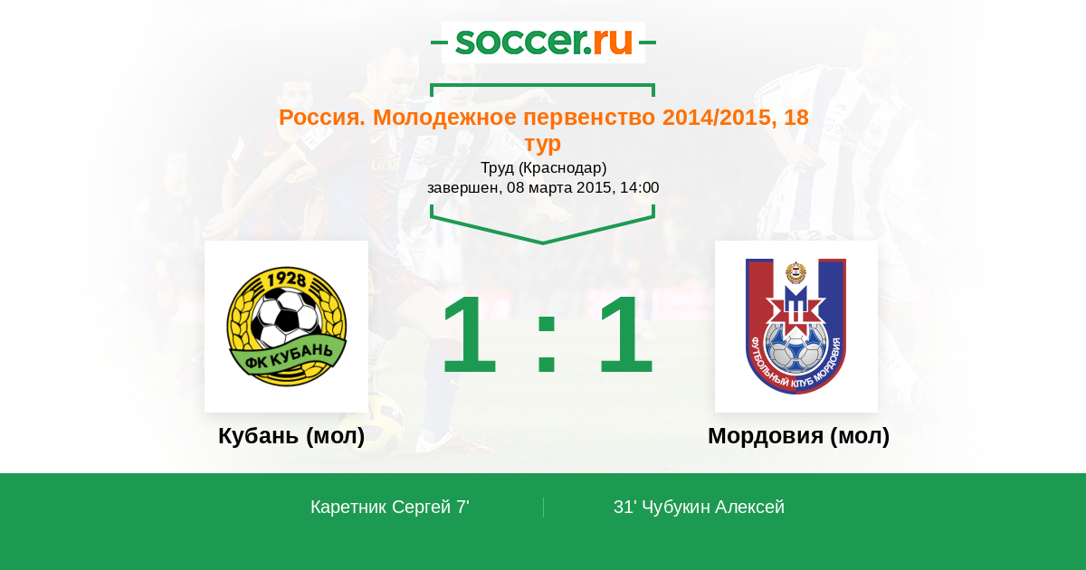 Кубань (мол) - Мордовия (мол): обзор матча 8 марта 2015