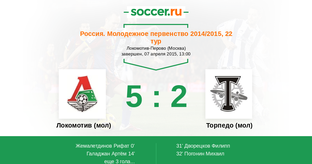 Локомотив (мол) - Торпедо (мол): обзор матча 7 апреля 2015