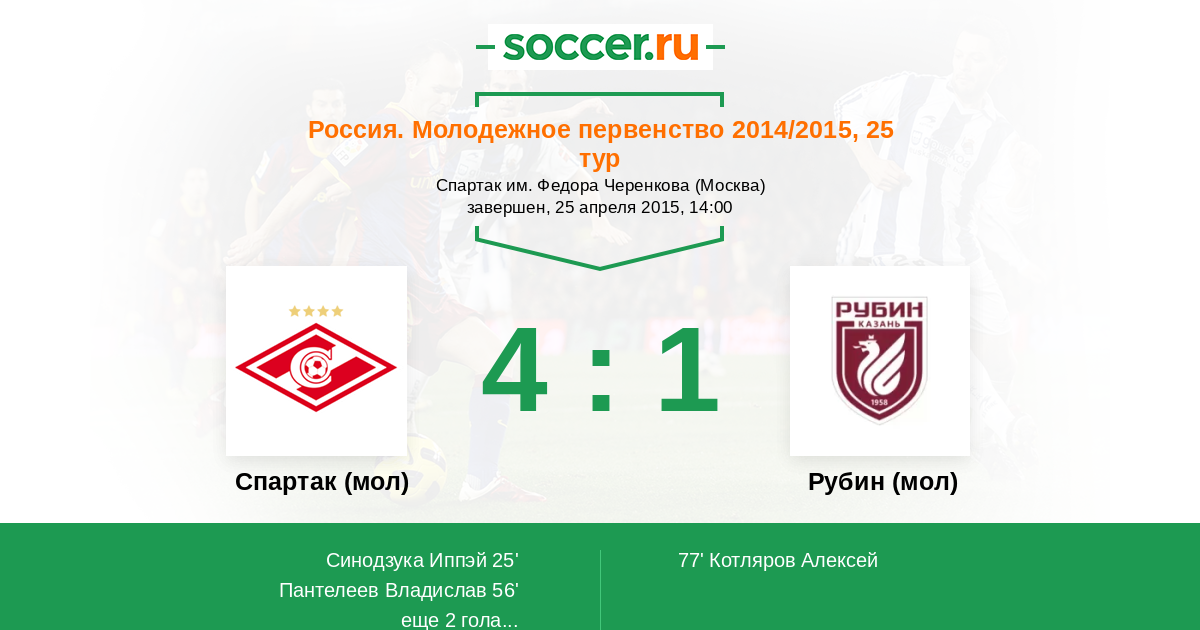 Спартак (мол) - Рубин (мол): обзор матча 25 апреля 2015