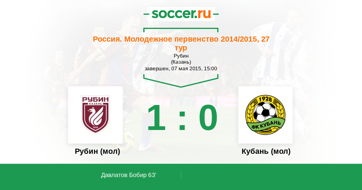 Рубин (мол) - Кубань (мол): обзор матча 7 мая 2015