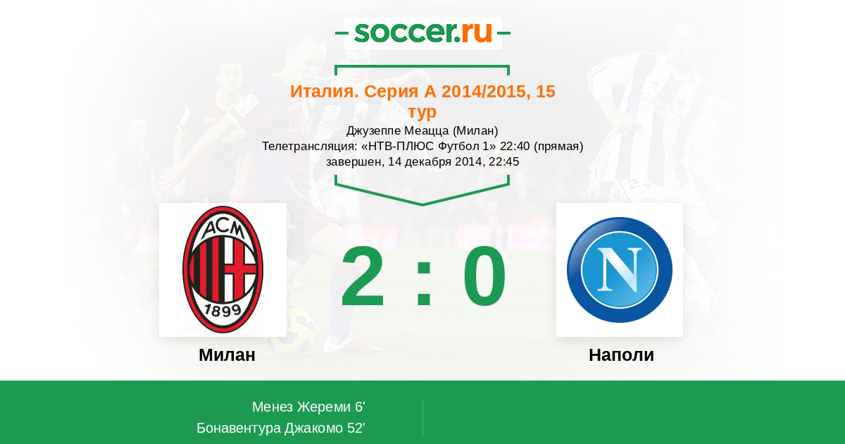 Милан, Джузеппе Меацца Телетрансляция: "НТВ-ПЛЮС Футбол 1" 22:40 (прямая)
