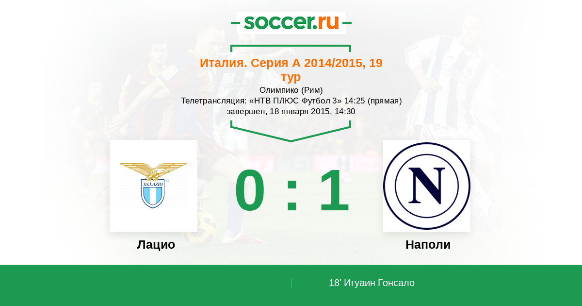 Рим, Олимпико Телетрансляция: "НТВ ПЛЮС Футбол 3" 14:25 (прямая)