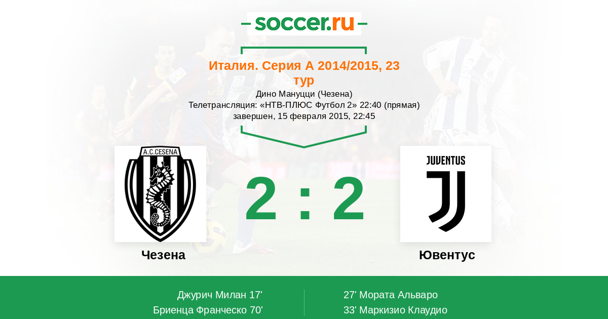 Чезена, Дино Мануцци Телетрансляция: "НТВ-ПЛЮС Футбол 2" 22:40 (прямая)