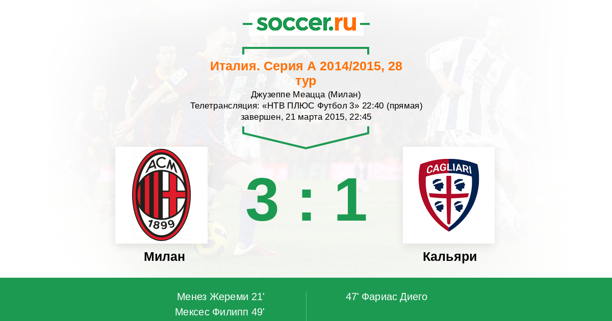 Милан, Джузеппе Меацца Телетрансляция: "НТВ ПЛЮС Футбол 3" 22:40 (прямая)