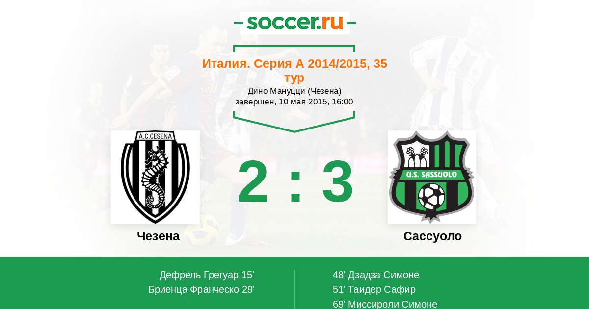 Чезена - Сассуоло: обзор матча 10 мая 2015