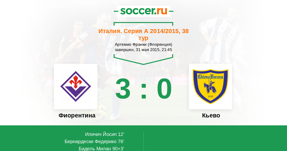 Фиорентина - Кьево: обзор матча 31 мая 2015