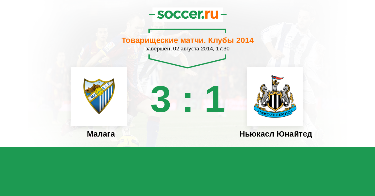 Малага - Ньюкасл Юнайтед: обзор матча 2 августа 2014