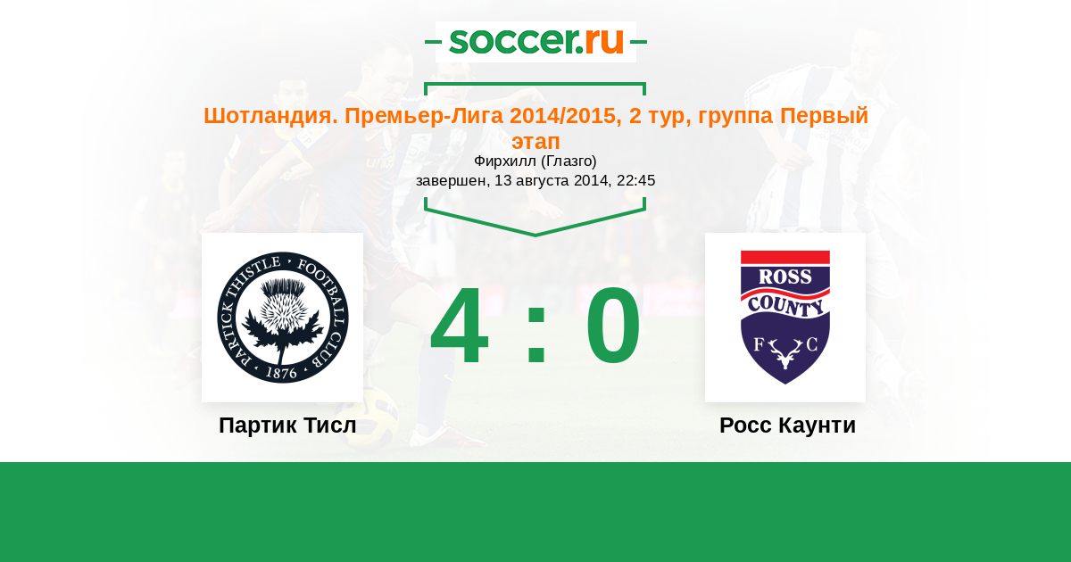 Партик Тисл - Росс Каунти: обзор матча 13 августа 2014