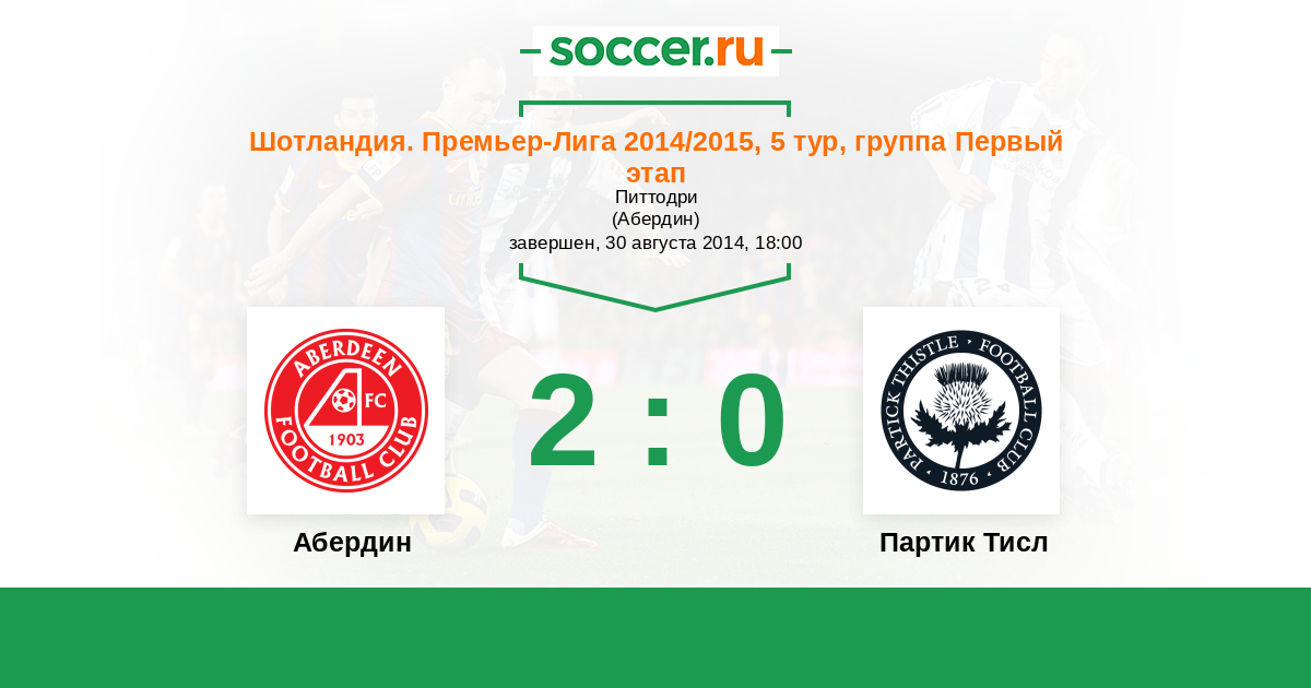 Абердин - Партик Тисл: обзор матча 30 августа 2014