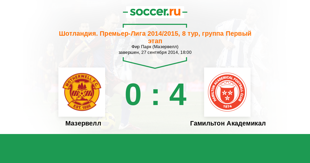 Мазервелл - Гамильтон Академикал: обзор матча 27 сентября 2014