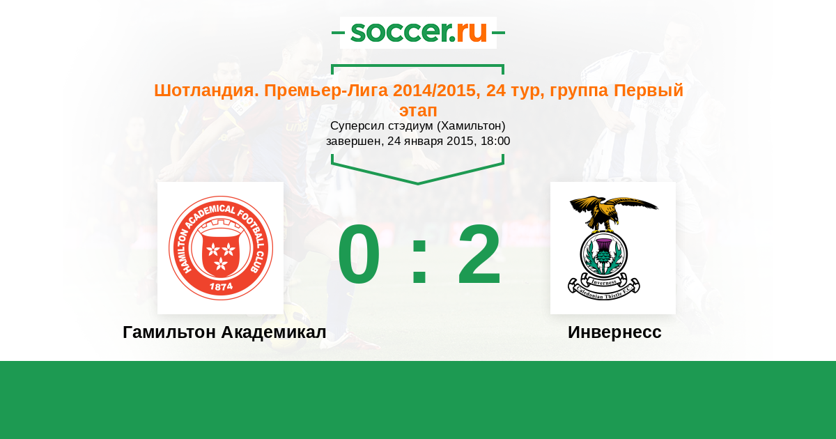 Гамильтон Академикал - Инвернесс: обзор матча 24 января 2015