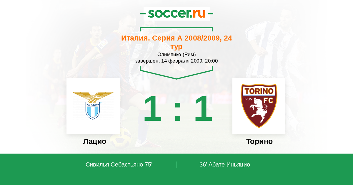 Лацио - Торино: обзор матча 14 февраля 2009