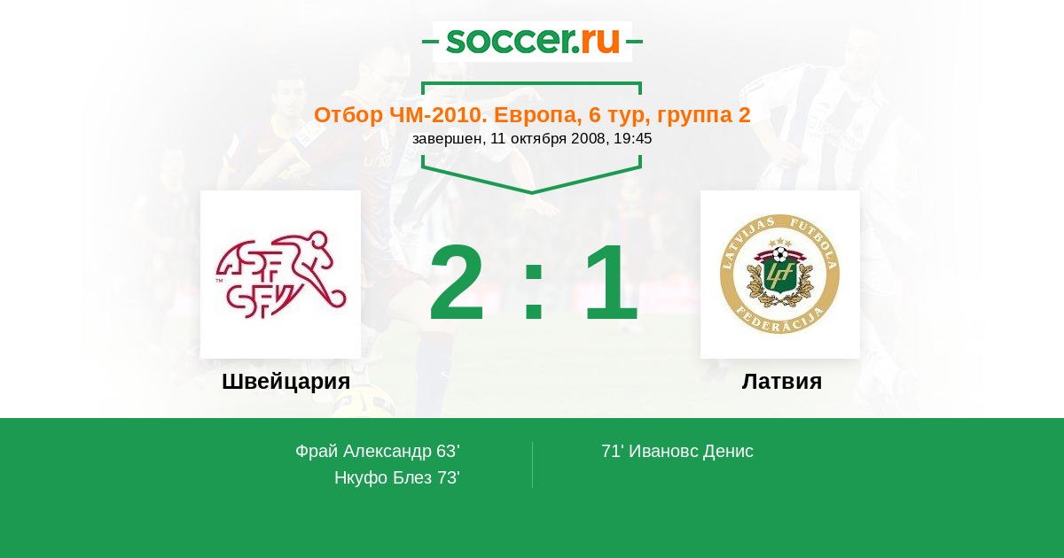 Швейцария - Латвия: обзор матча 11 октября 2008