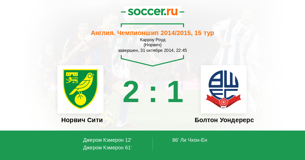 Норвич Сити - Болтон Уондерерс: обзор матча 31 октября 2014