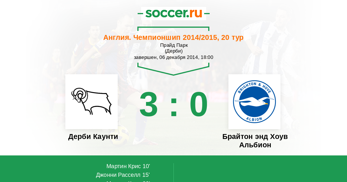Дерби Каунти - Брайтон энд Хоув Альбион: обзор матча 6 декабря 2014