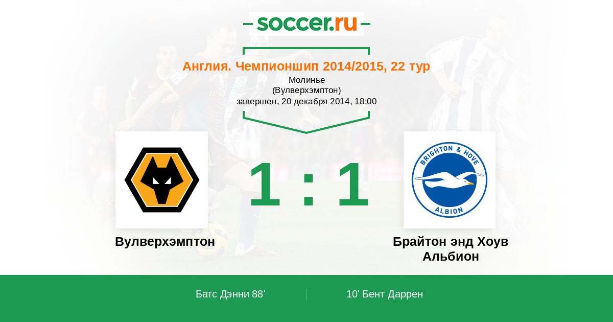 Вулверхэмптон - Брайтон энд Хоув Альбион: обзор матча 20 декабря 2014