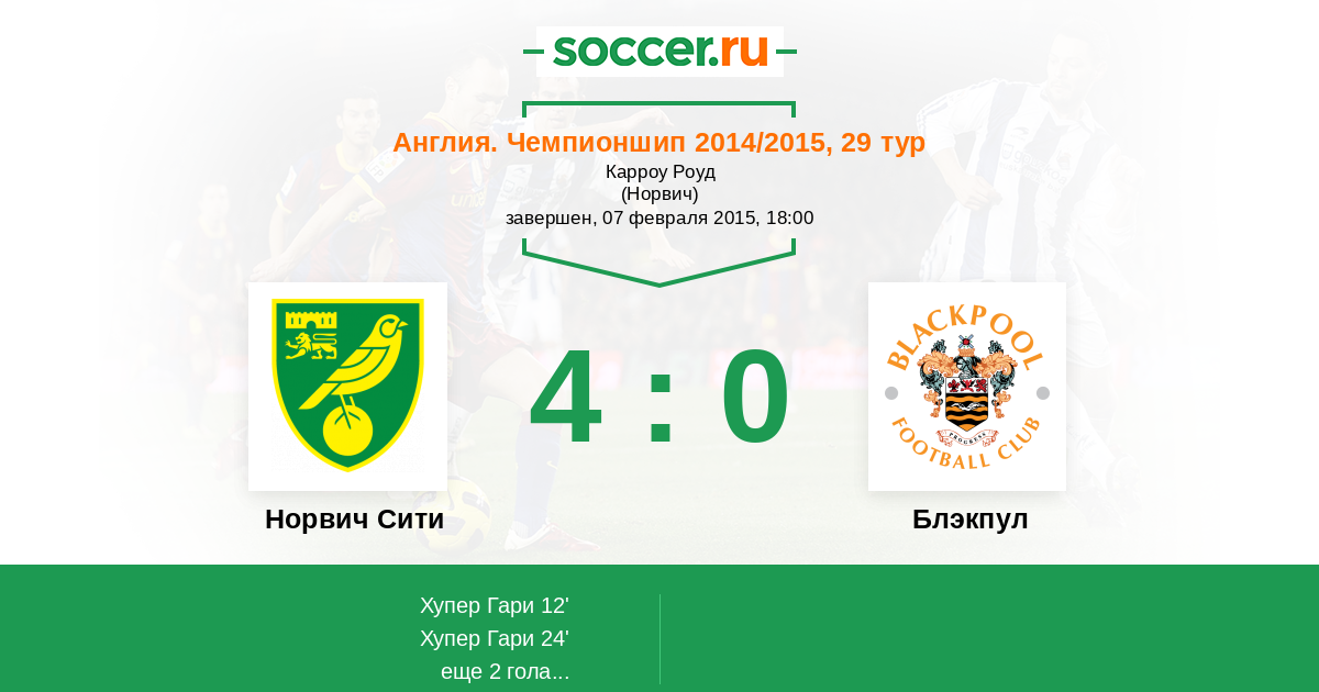 Норвич Сити - Блэкпул: обзор матча 7 февраля 2015