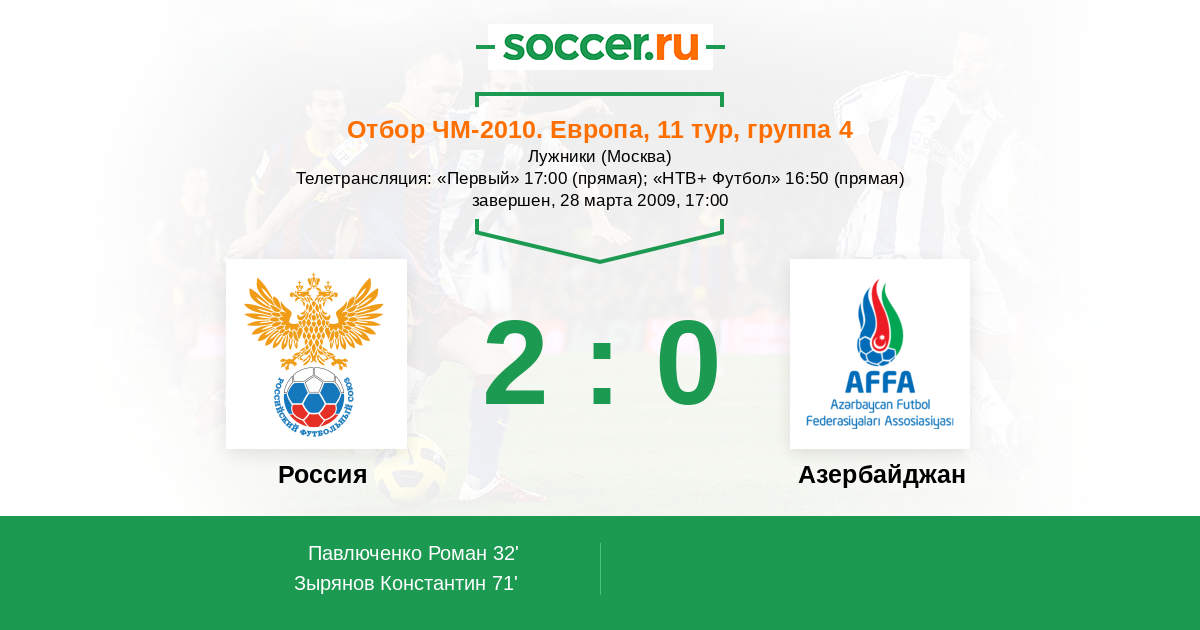 Россия - Азербайджан: обзор матча 28 марта 2009