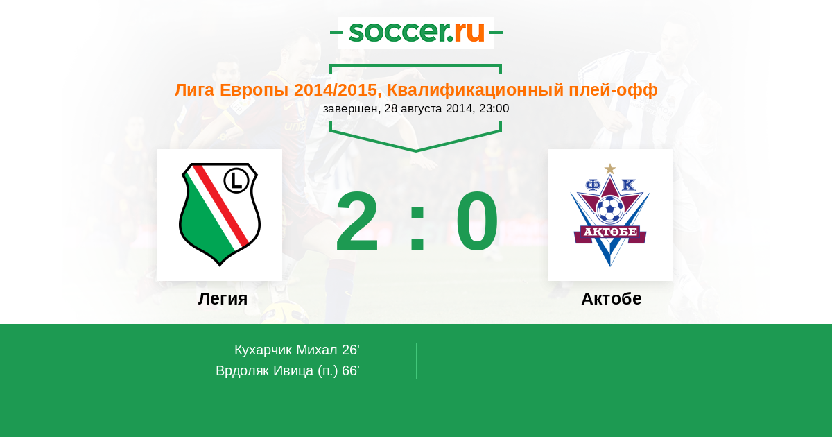 Легия - Актобе: обзор матча 28 августа 2014