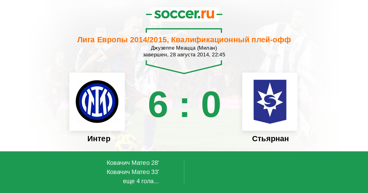 Интер - Стьярнан: обзор матча 28 августа 2014