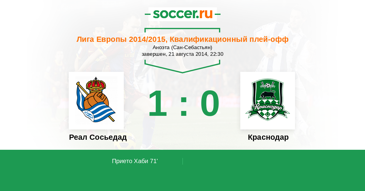 Реал Сосьедад - Краснодар: обзор матча 21 августа 2014