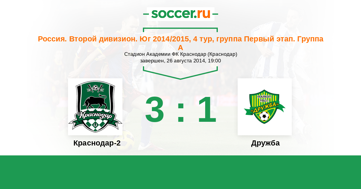 Краснодар-2 - Дружба: обзор матча 26 августа 2014