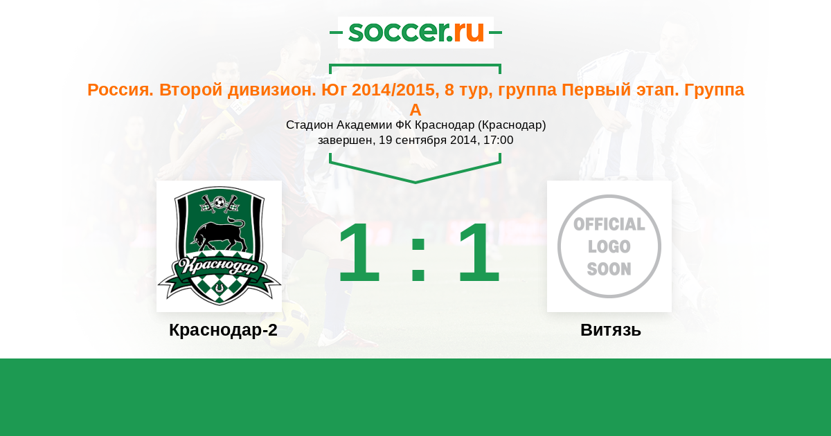 Краснодар-2 - Витязь: обзор матча 19 сентября 2014