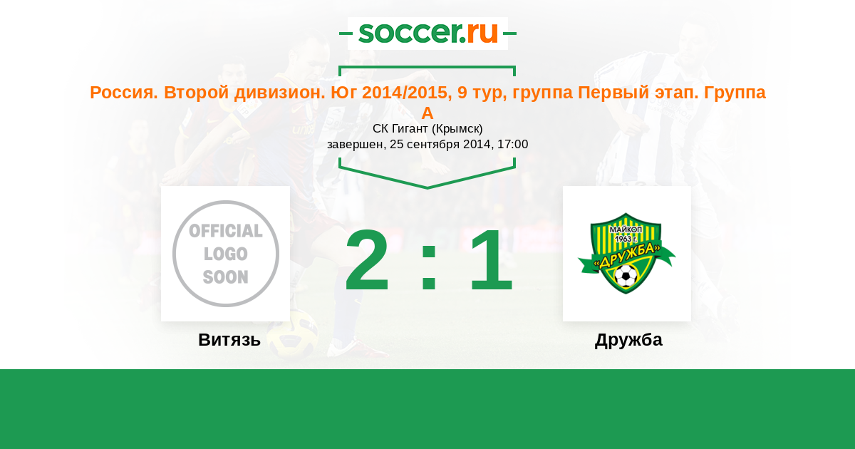Витязь - Дружба: обзор матча 25 сентября 2014
