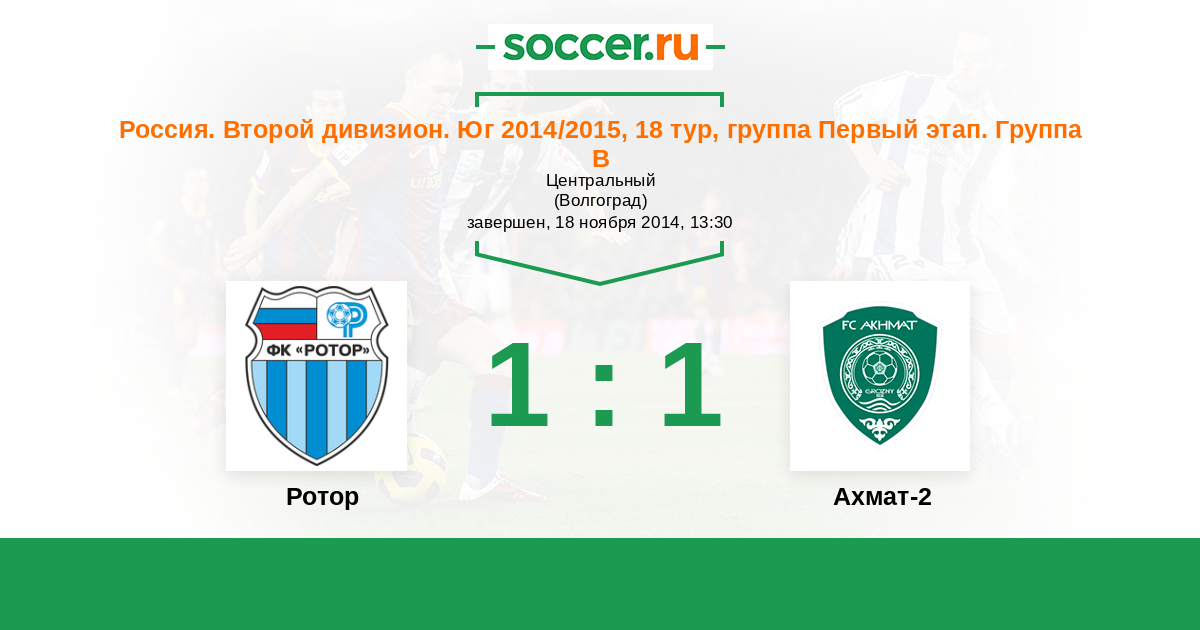 Ротор - Ахмат-2: обзор матча 18 ноября 2014