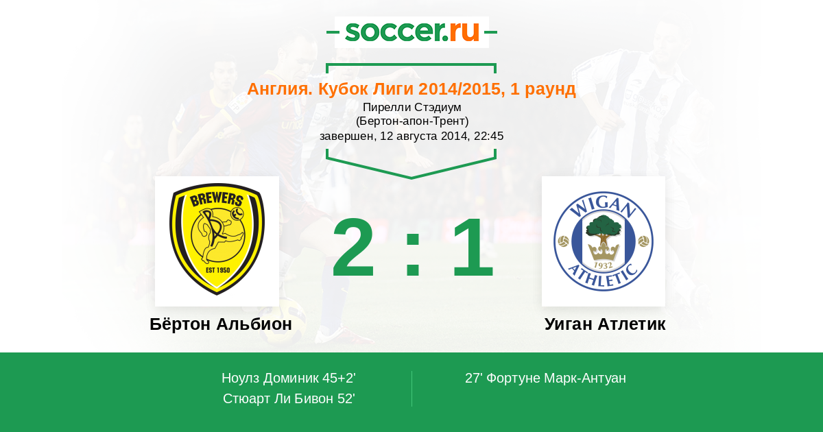 Бёртон Альбион - Уиган Атлетик: обзор матча 12 августа 2014