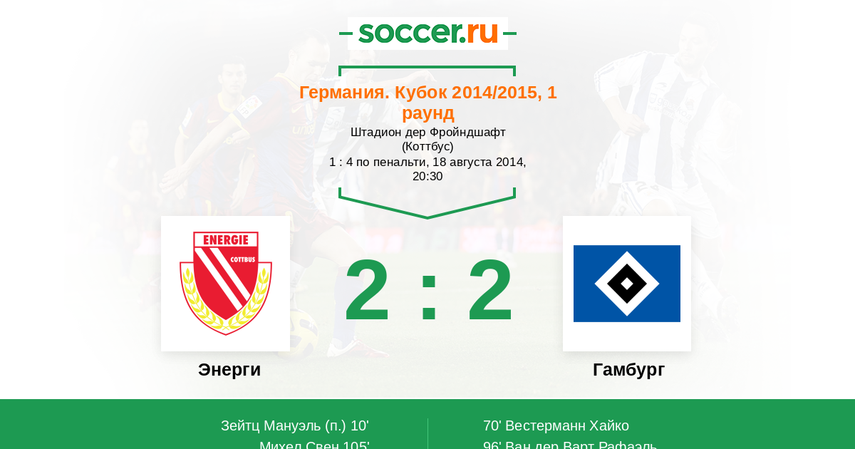 Энерги - Гамбург: обзор матча 18 августа 2014