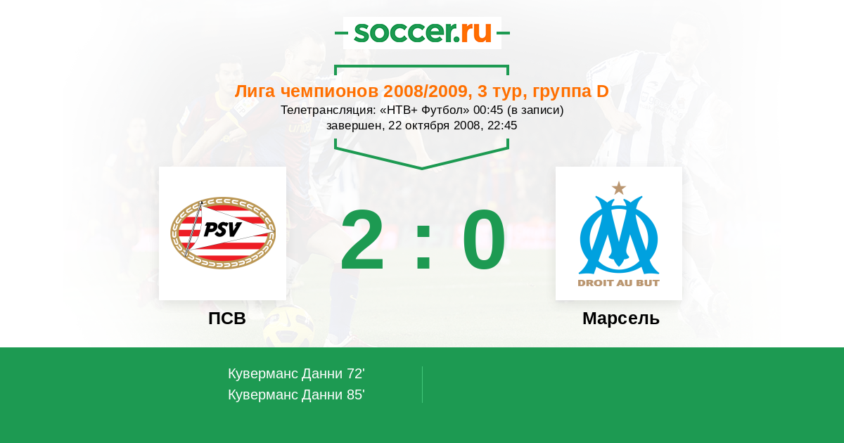 ПСВ - Марсель: обзор матча 22 октября 2008