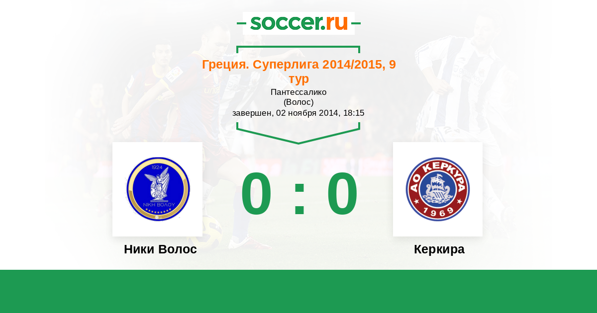 Ники Волос - Керкира: обзор матча 2 ноября 2014