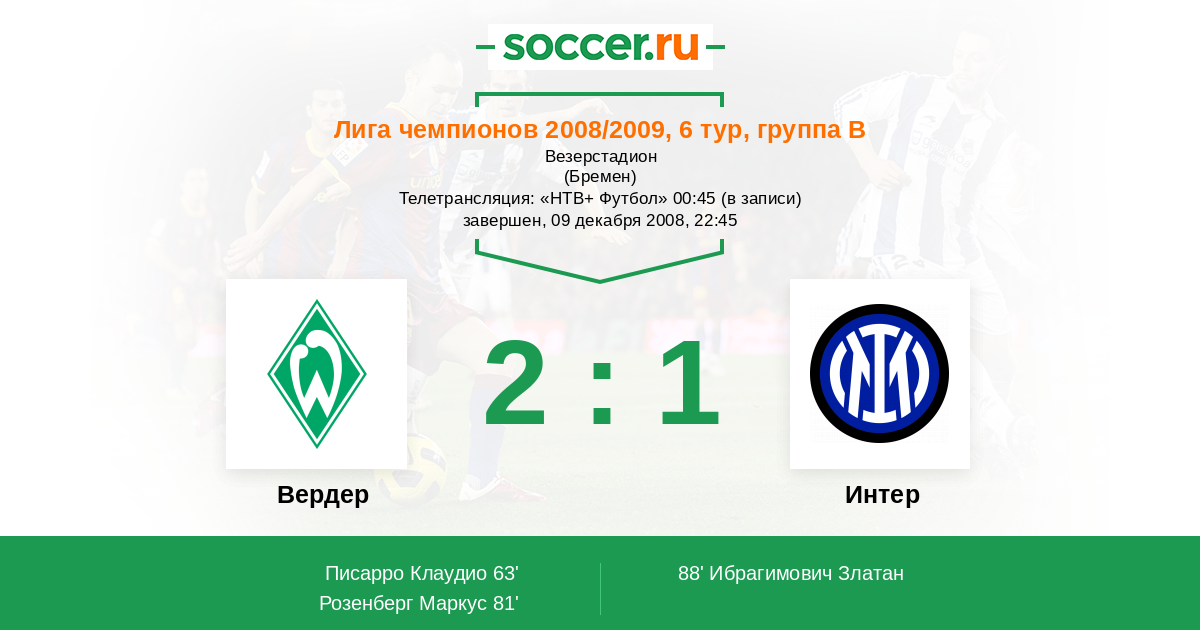 Бремен, Везерстадион Телетрансляция: "НТВ+ Футбол" 00:45 (в записи)