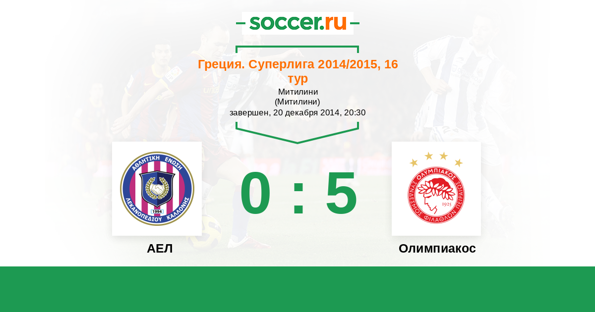 АЕЛ - Олимпиакос: обзор матча 20 декабря 2014