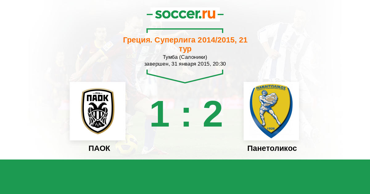 ПАОК - Панетоликос: обзор матча 31 января 2015