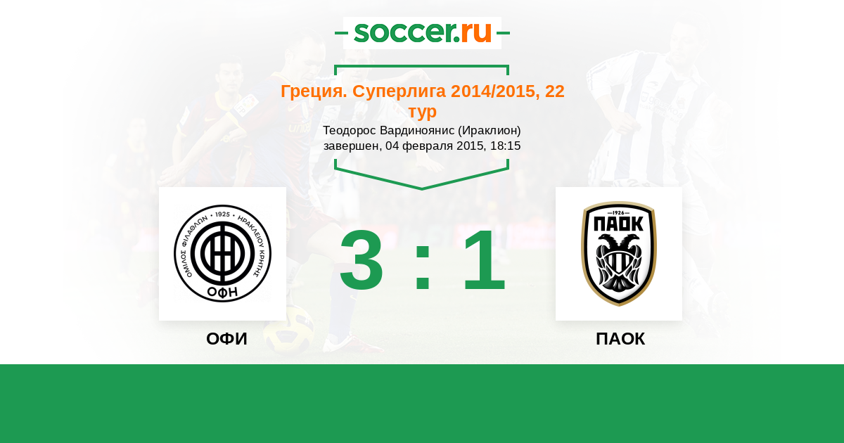 ОФИ - ПАОК: обзор матча 4 февраля 2015