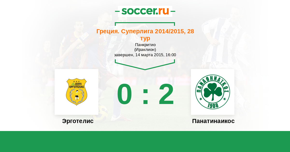 Эрготелис - Панатинаикос: обзор матча 14 марта 2015