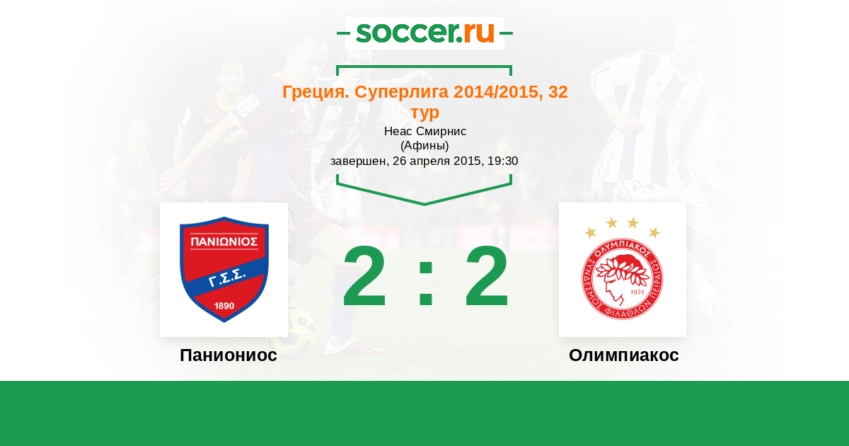 Паниониос - Олимпиакос: обзор матча 26 апреля 2015