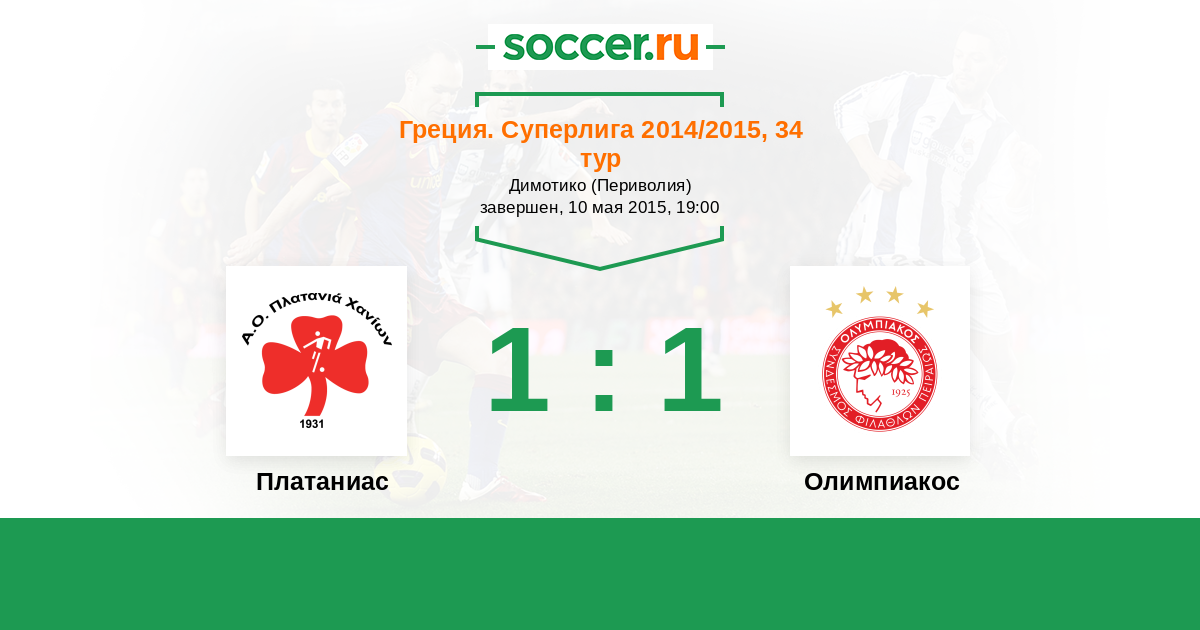 Платаниас - Олимпиакос: обзор матча 10 мая 2015