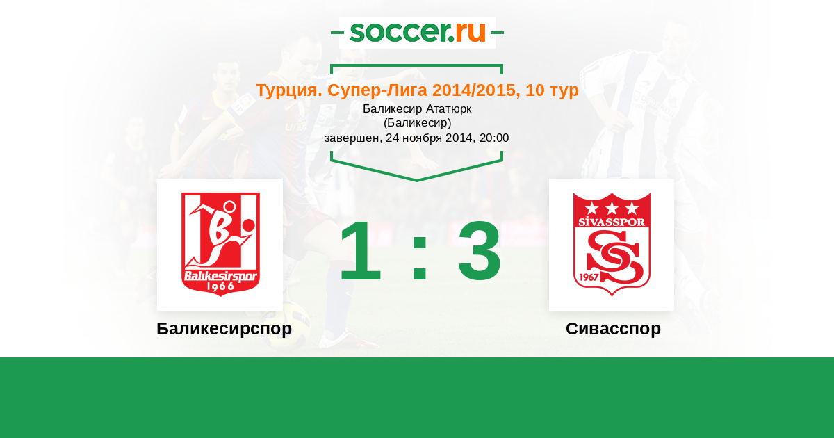Баликесирспор - Сивасспор: обзор матча 24 ноября 2014