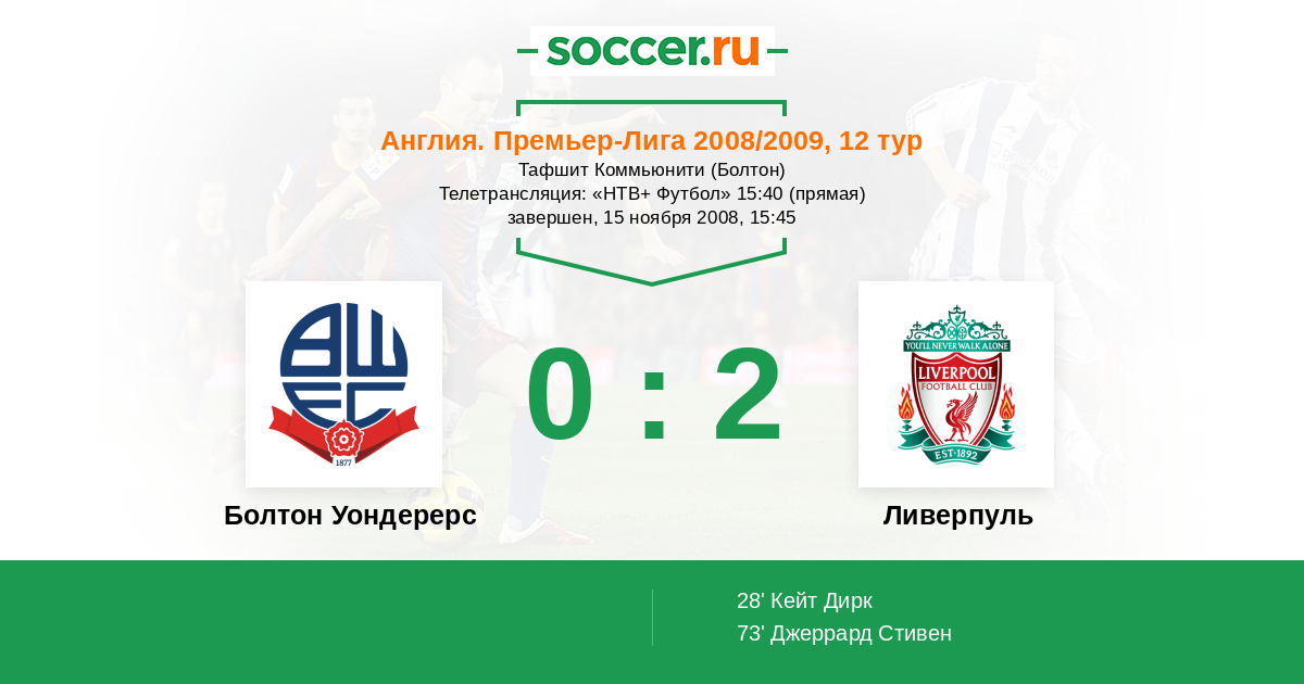 Болтон Уондерерс - Ливерпуль: обзор матча 15 ноября 2008