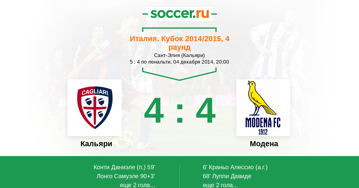 Кальяри - Модена: обзор матча 4 декабря 2014