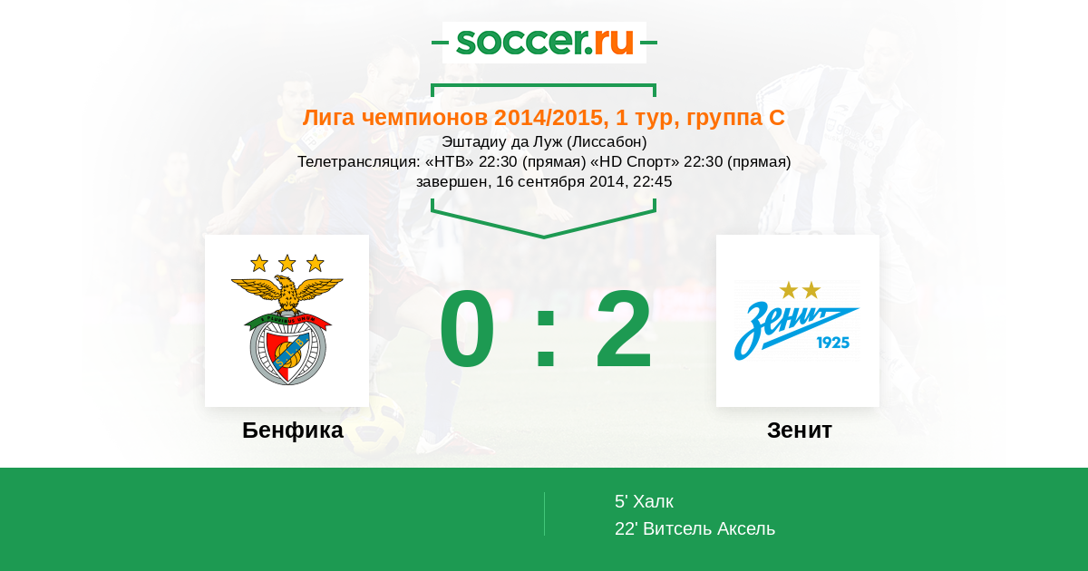 Бенфика - Зенит: обзор матча 16 сентября 2014