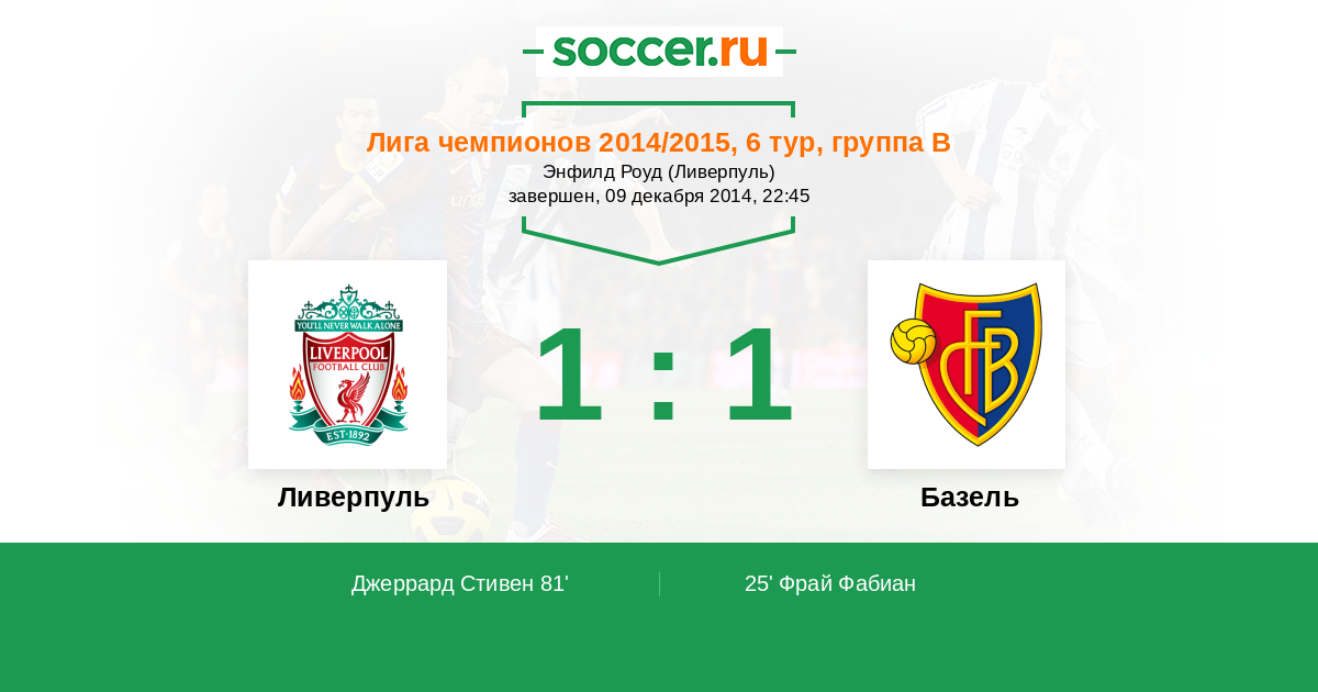 Ливерпуль - Базель: обзор матча 9 декабря 2014