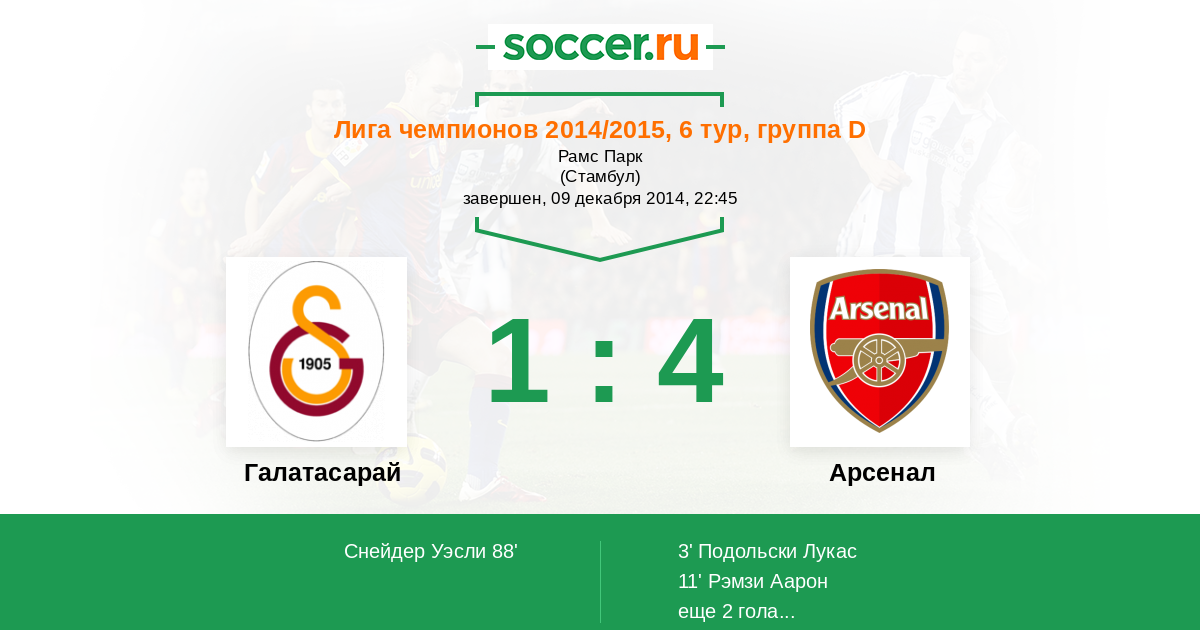 Галатасарай - Арсенал: обзор матча 9 декабря 2014