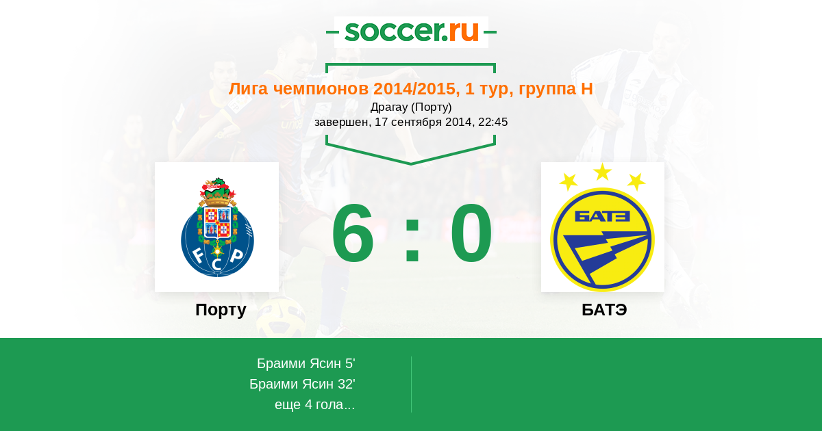 Порту - БАТЭ: обзор матча 17 сентября 2014