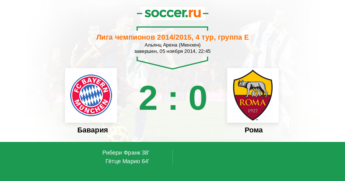 Бавария - Рома: обзор матча 5 ноября 2014