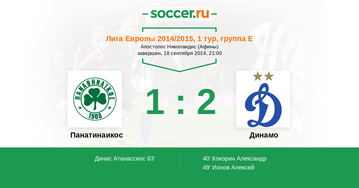 Панатинаикос - Динамо: обзор матча 18 сентября 2014
