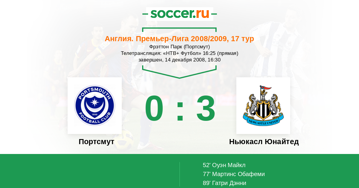 Портсмут - Ньюкасл Юнайтед: обзор матча 14 декабря 2008